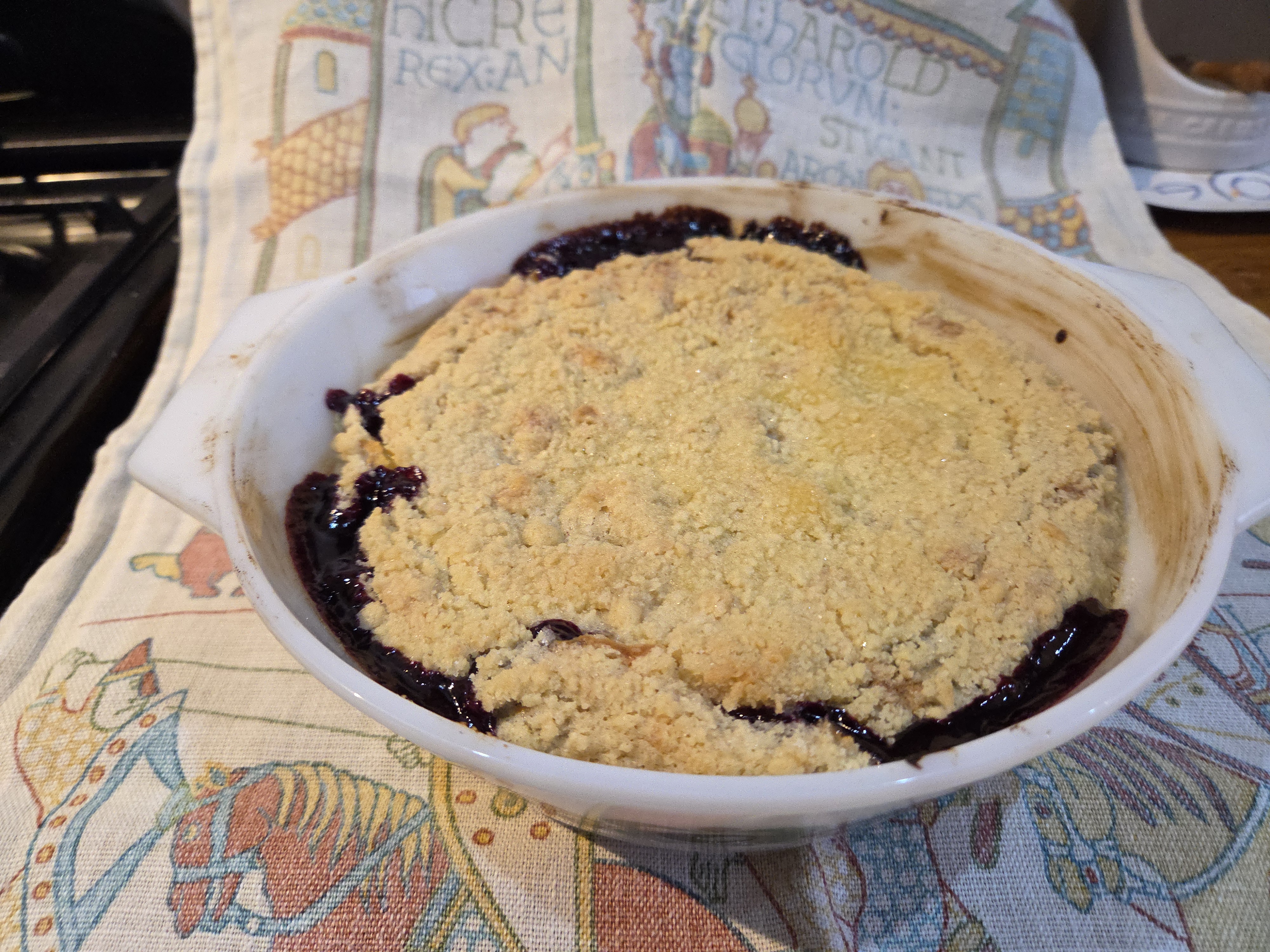 - Put the fruit mixture at the bottom of an oven proof dish – I used a Pyrex dish.