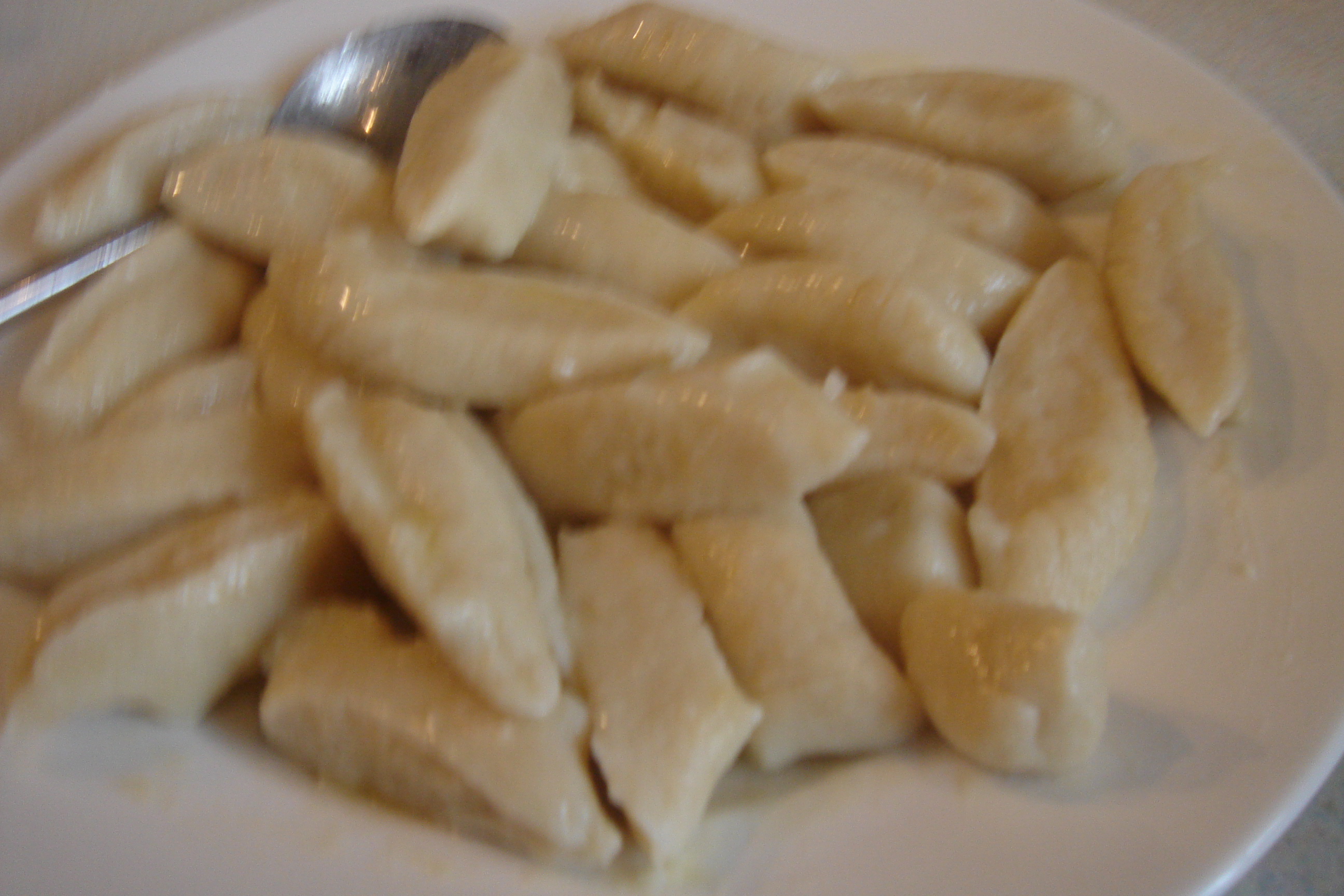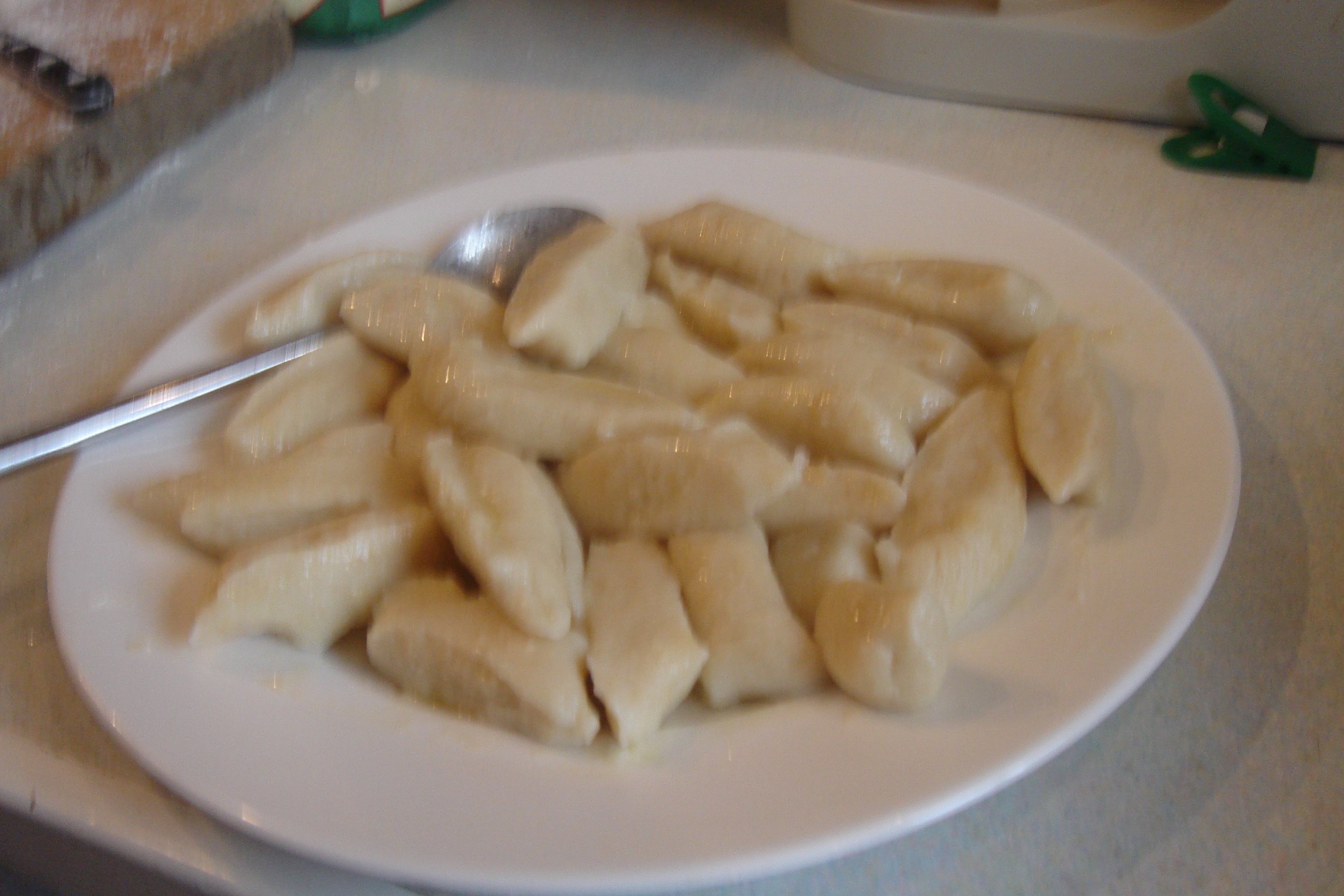 My mother called these grube kluski – fat noodles but on my recent visits to Poland I have had these under the name kopytka, this means little hooves, which I think describes their oval shape very well.