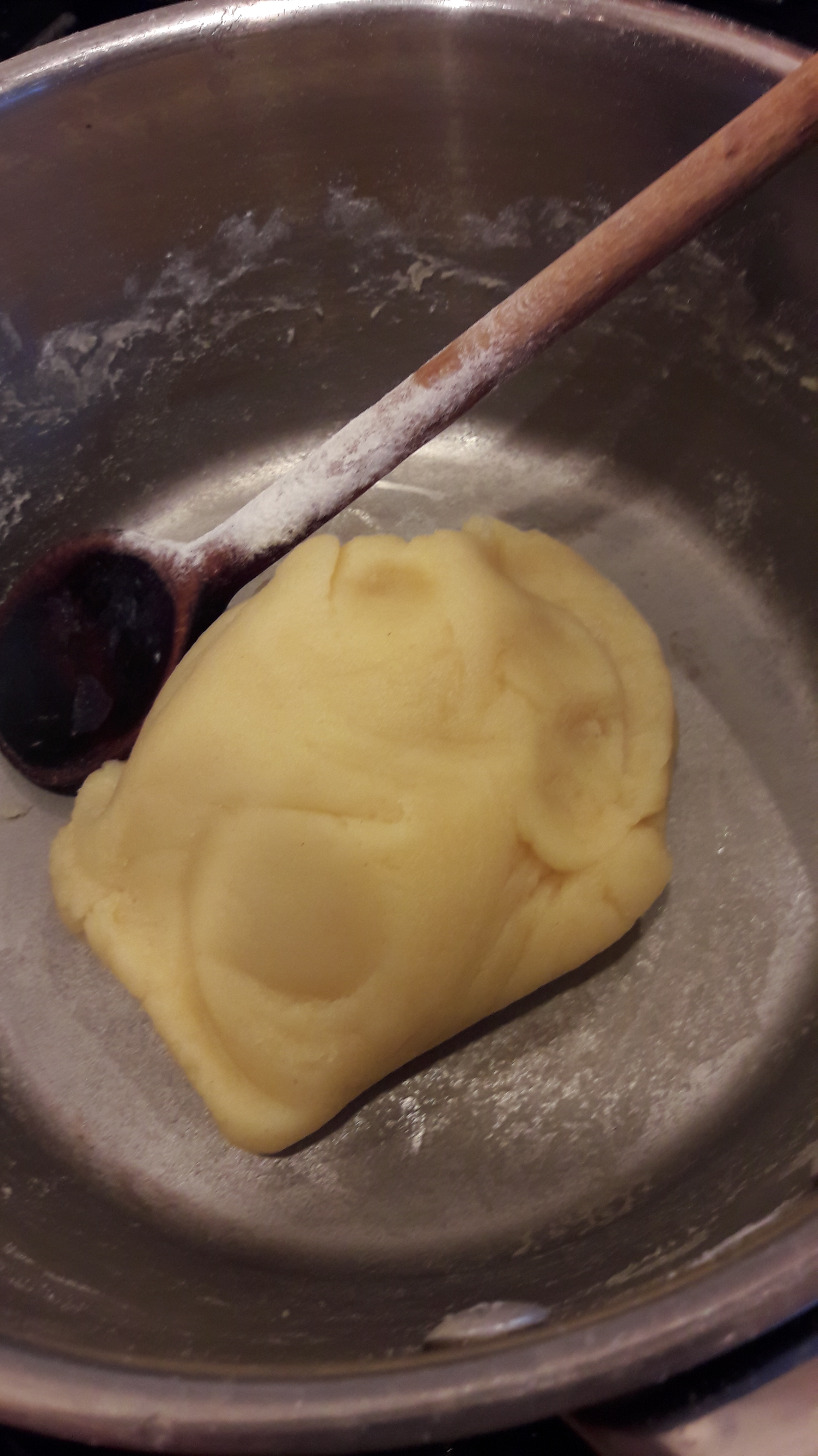 • Take the pan off the heat and put the dough into a bowl and leave till it is completely cold.