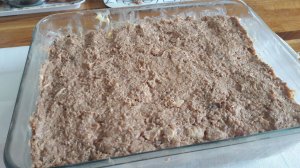 Pasztet is often cooked in a loaf tin – but I thought my quantities looked too large for my tin and have used a rectangular Pyrex dish – 19 x 24 x 8cm.