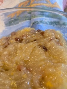 - Mix together the cooked rice with the minced chicken and the mushroom mix, add the marjoram.