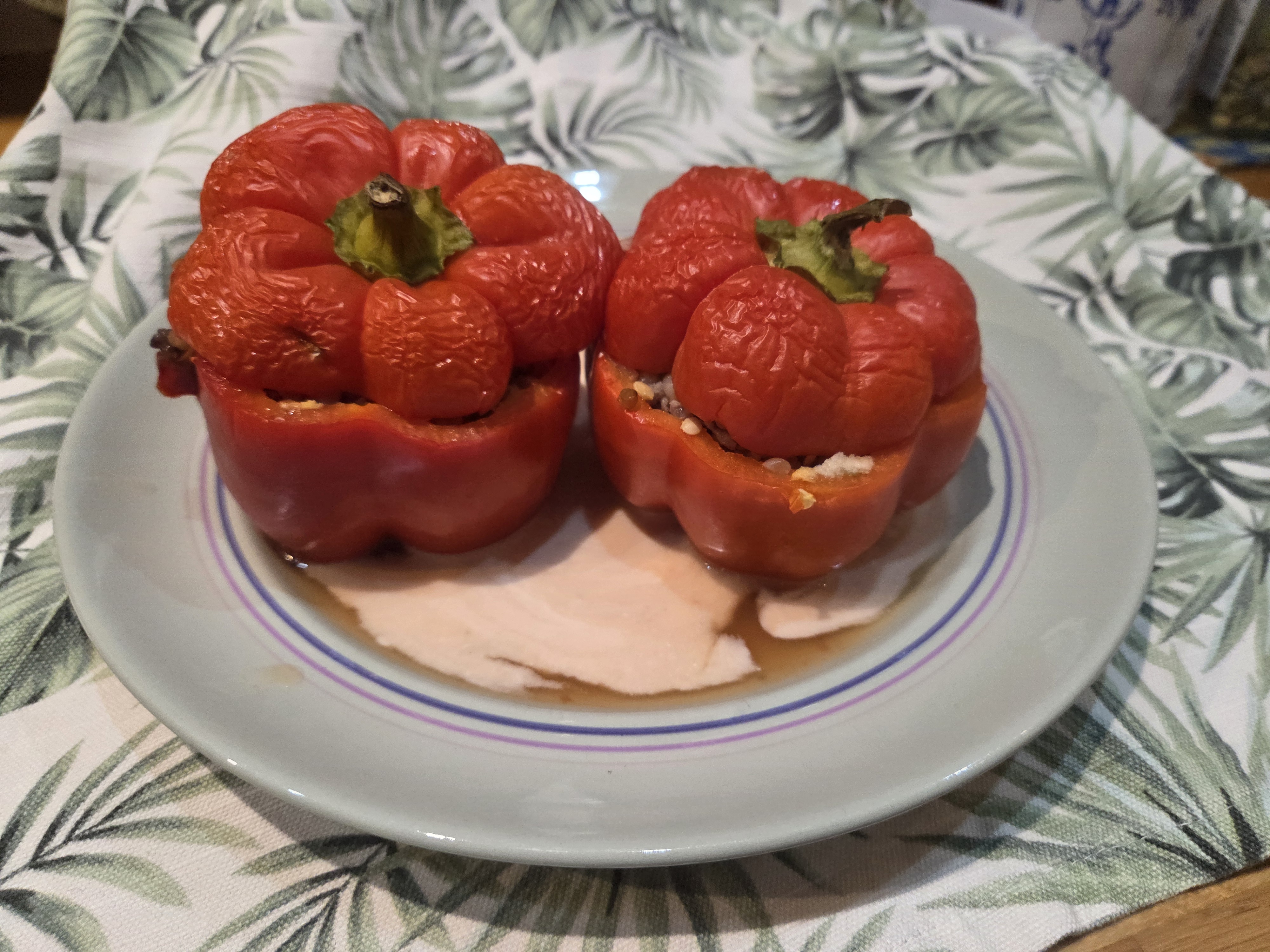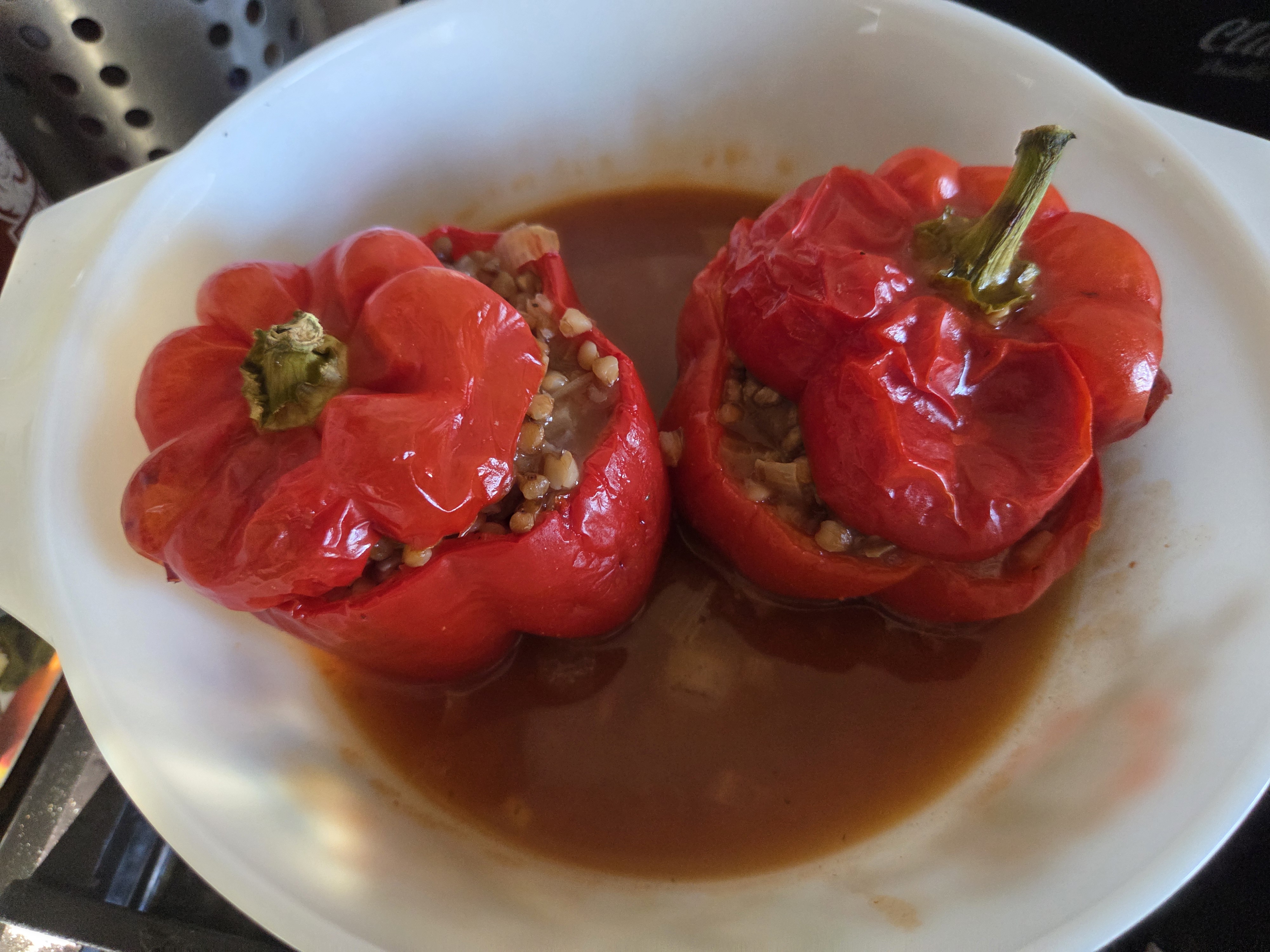 - Fill each pepper with the filling and put on the tops.