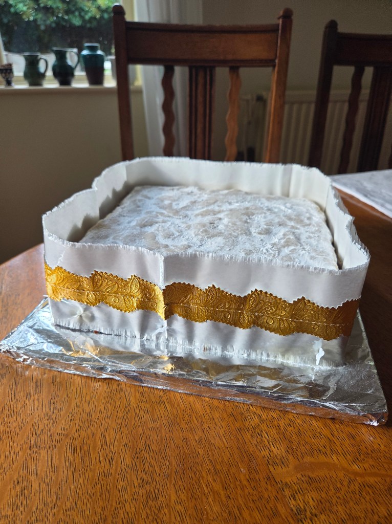 - I tend to check the cake at 40 minutes and will cover the top with greaseproof if it starts to brown but is not yet cooked through.