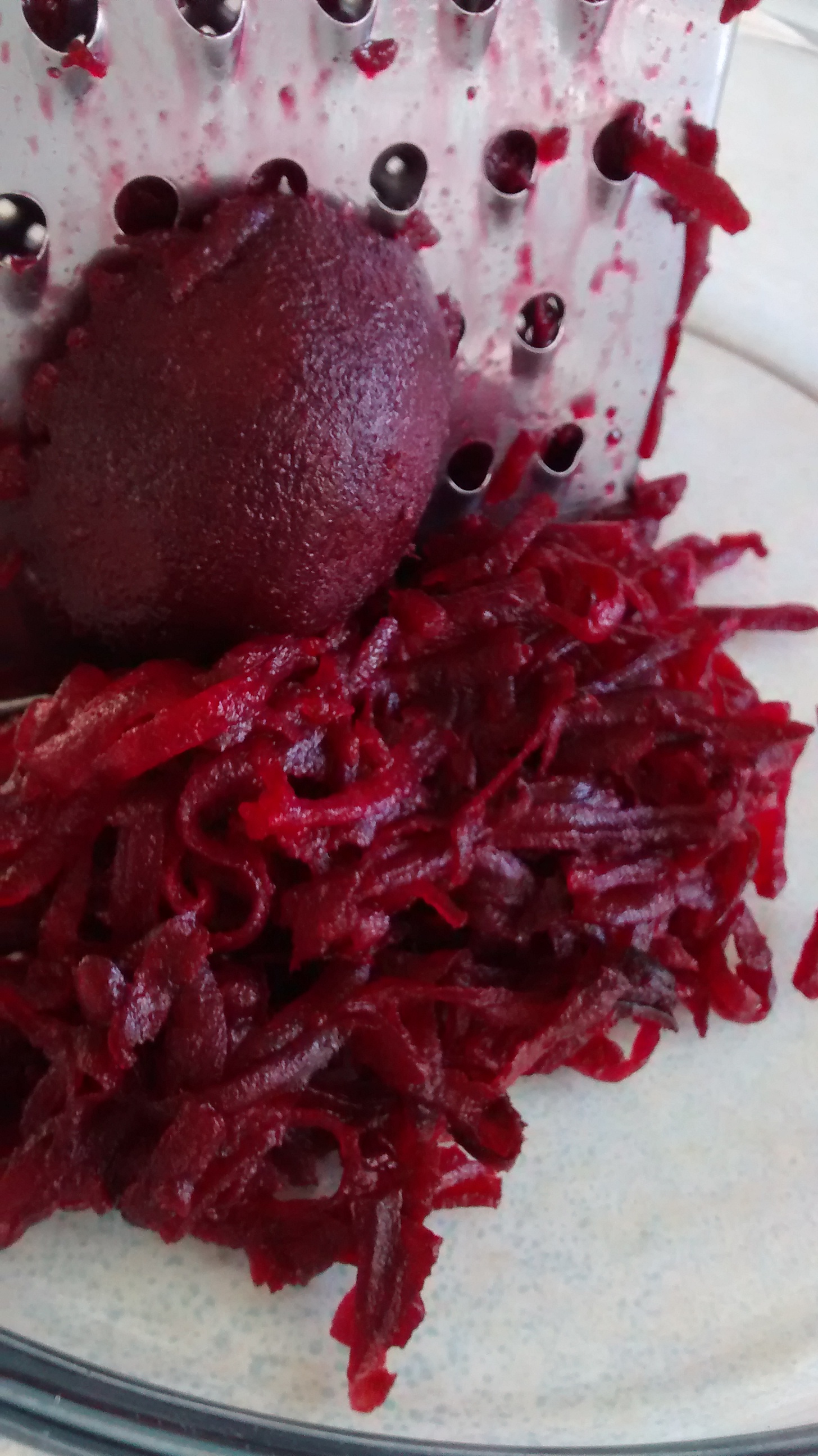Grate the beetroots using a fine or medium grater and put this into a bowl.