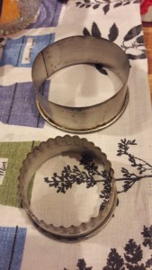2 sizes of cutters are needed – 1 – 7cm diameter, plain, for the base, 1 – 6cm diameter, crinkle edge for the top.