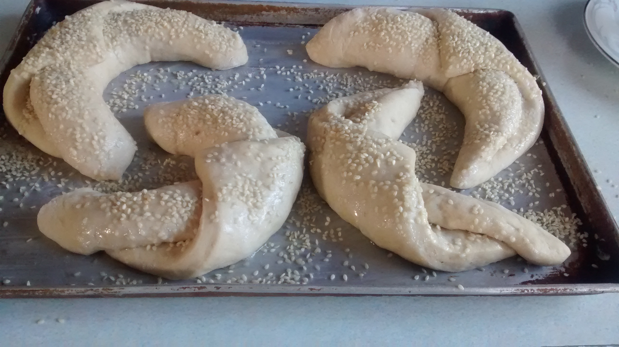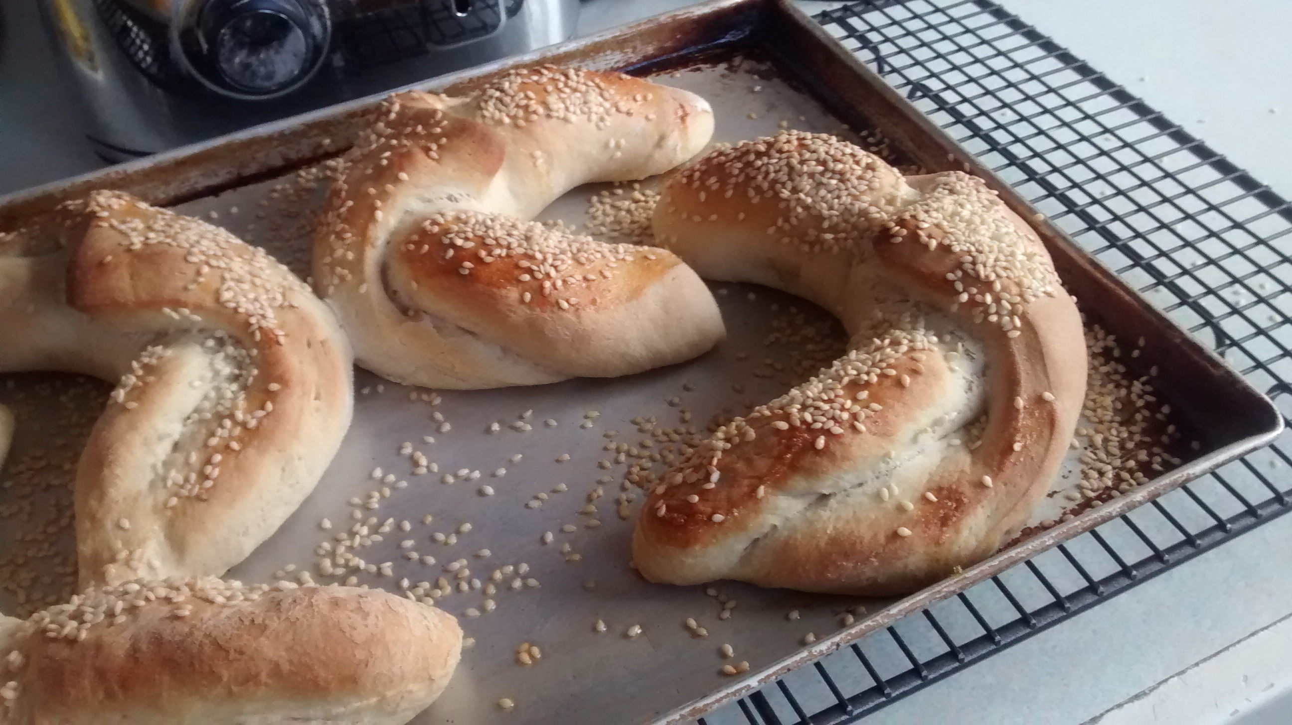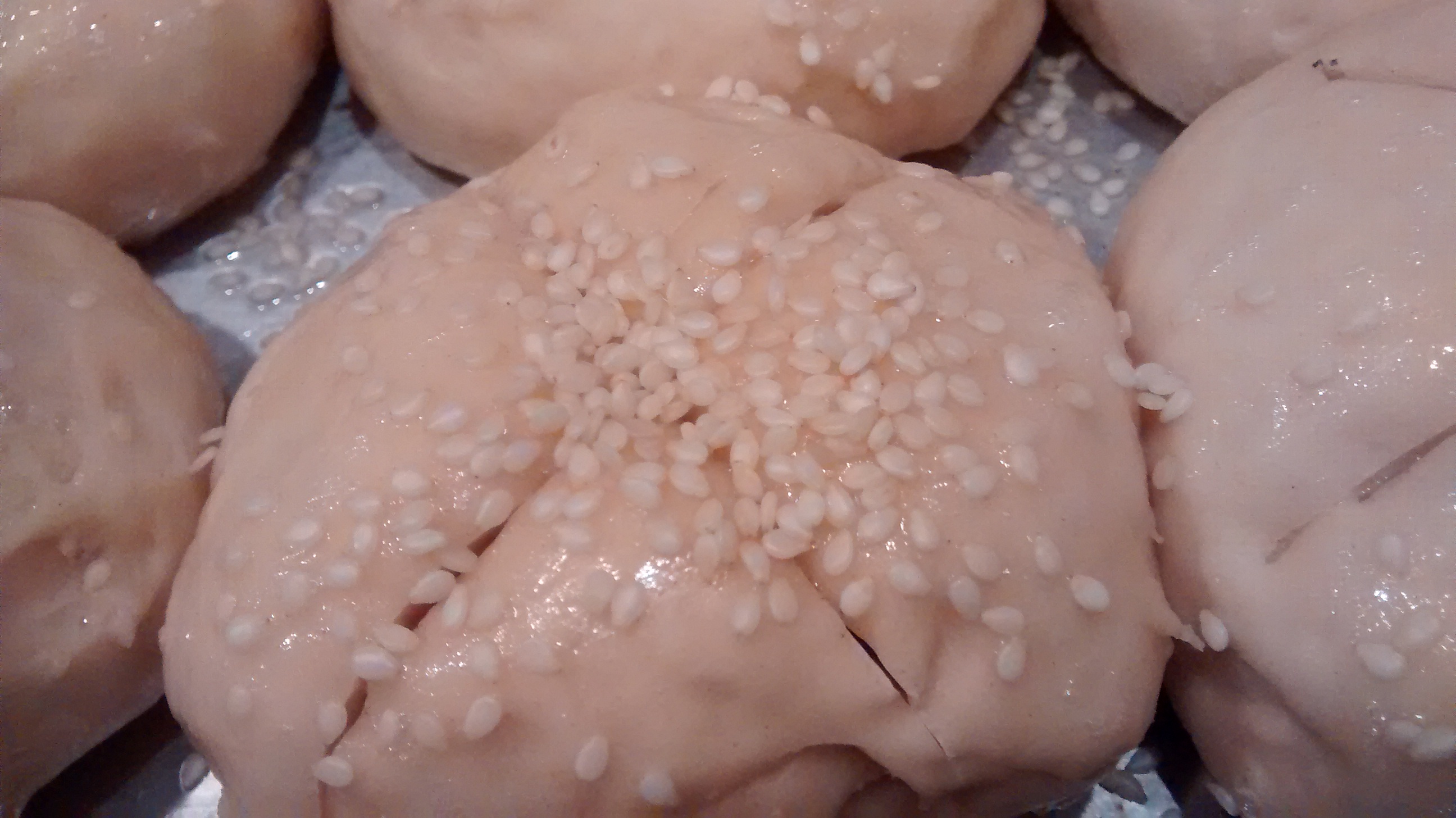 The next part is to shape the dough, brush with an egg white wash and sprinkle with seeds as desired and bake for 15 minutes.