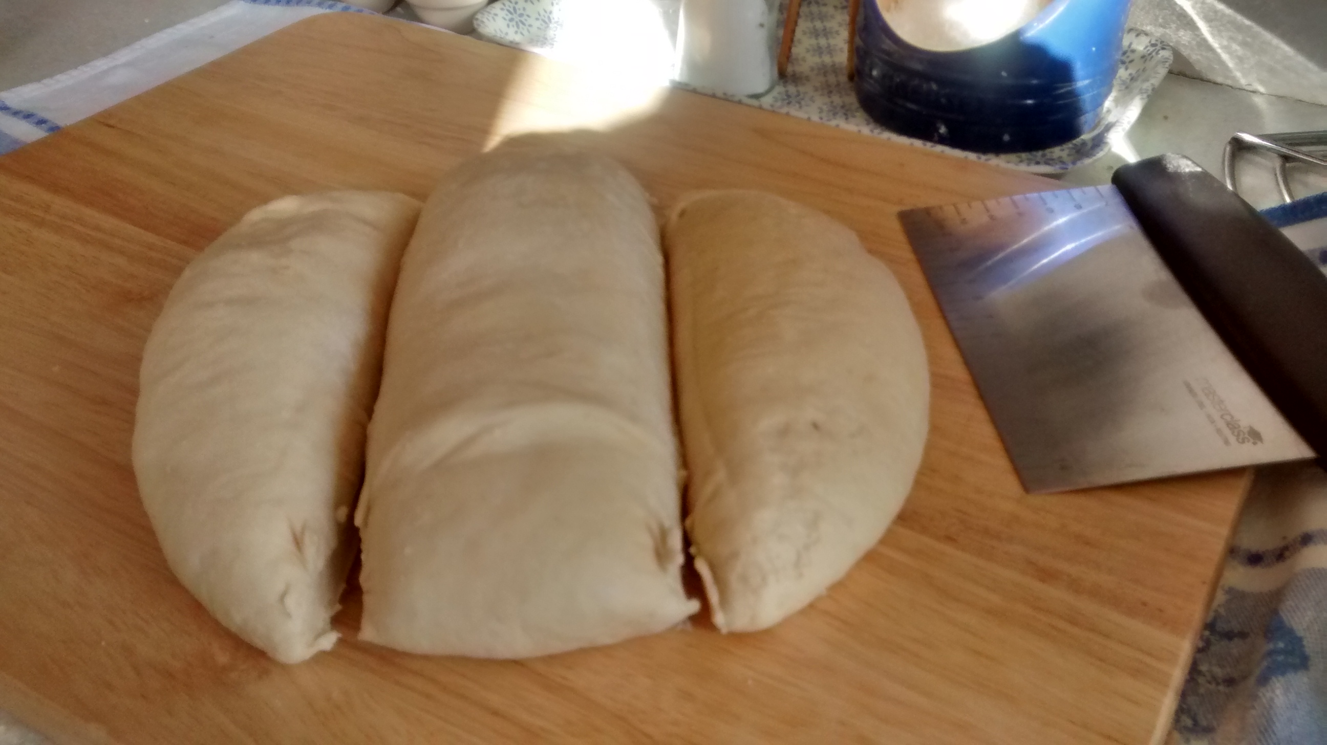 You need white (wheat) bread – either slices from a loaf or bread rolls – cut in half.