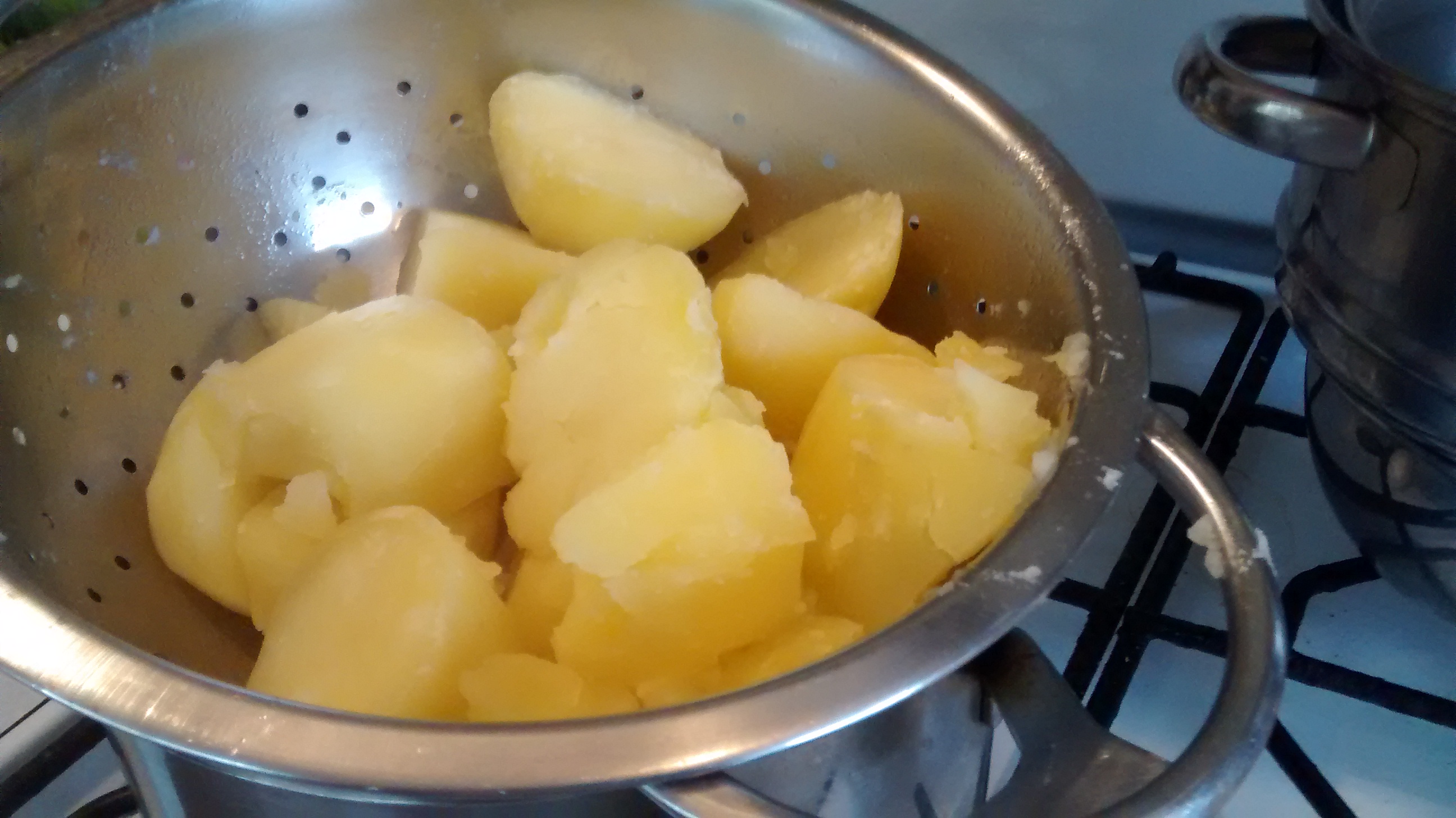 This is another way my mother had of using boiled potatoes – I do not remember her boiling the potatoes especially for these – she would make them with leftover boiled potatoes. (Not that she did not know how many to potatoes to cook for a meal – she would often cook more so she had some for a different use the next day.)