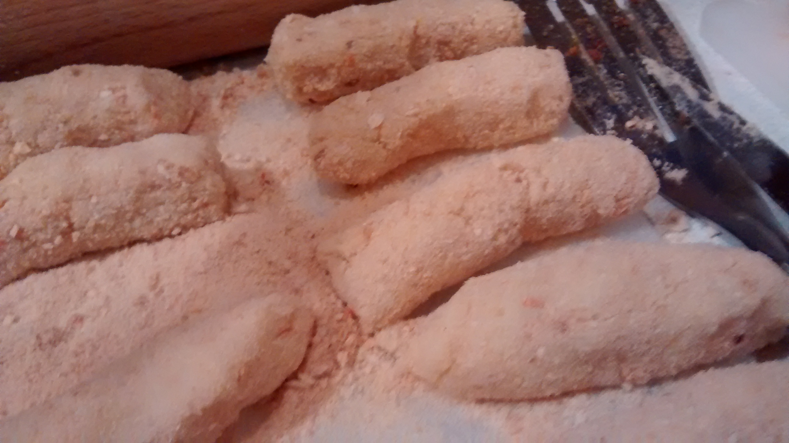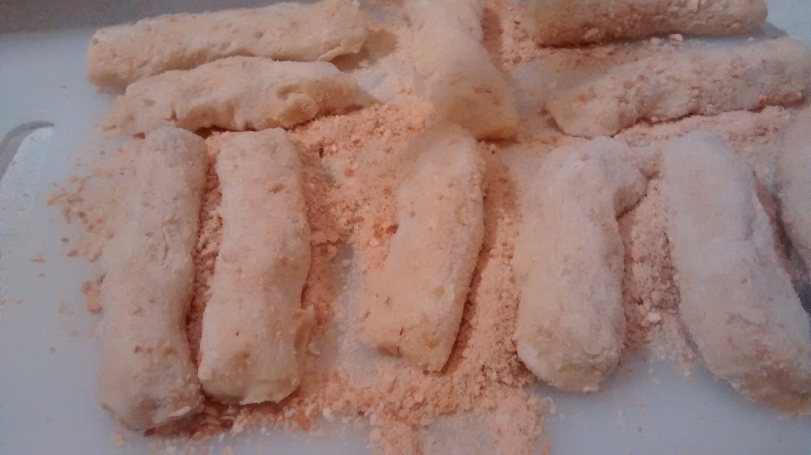 I usually make my own breadcrumbs as in the past the ones you could buy in England were often dyed orange and I did not like them at all.