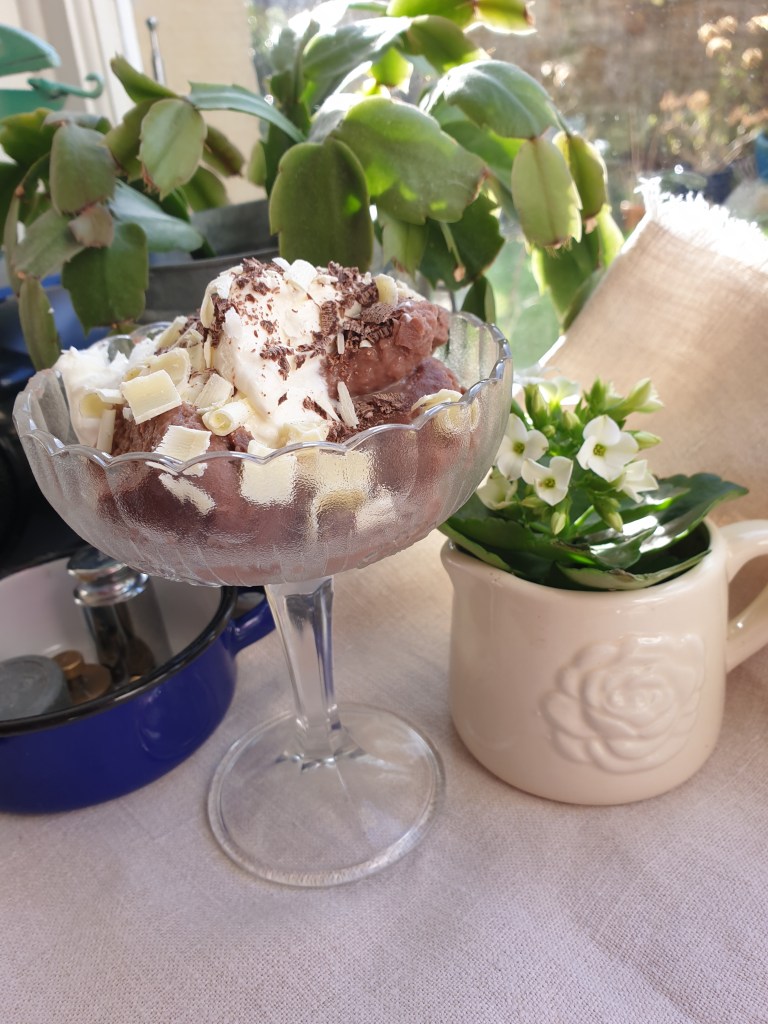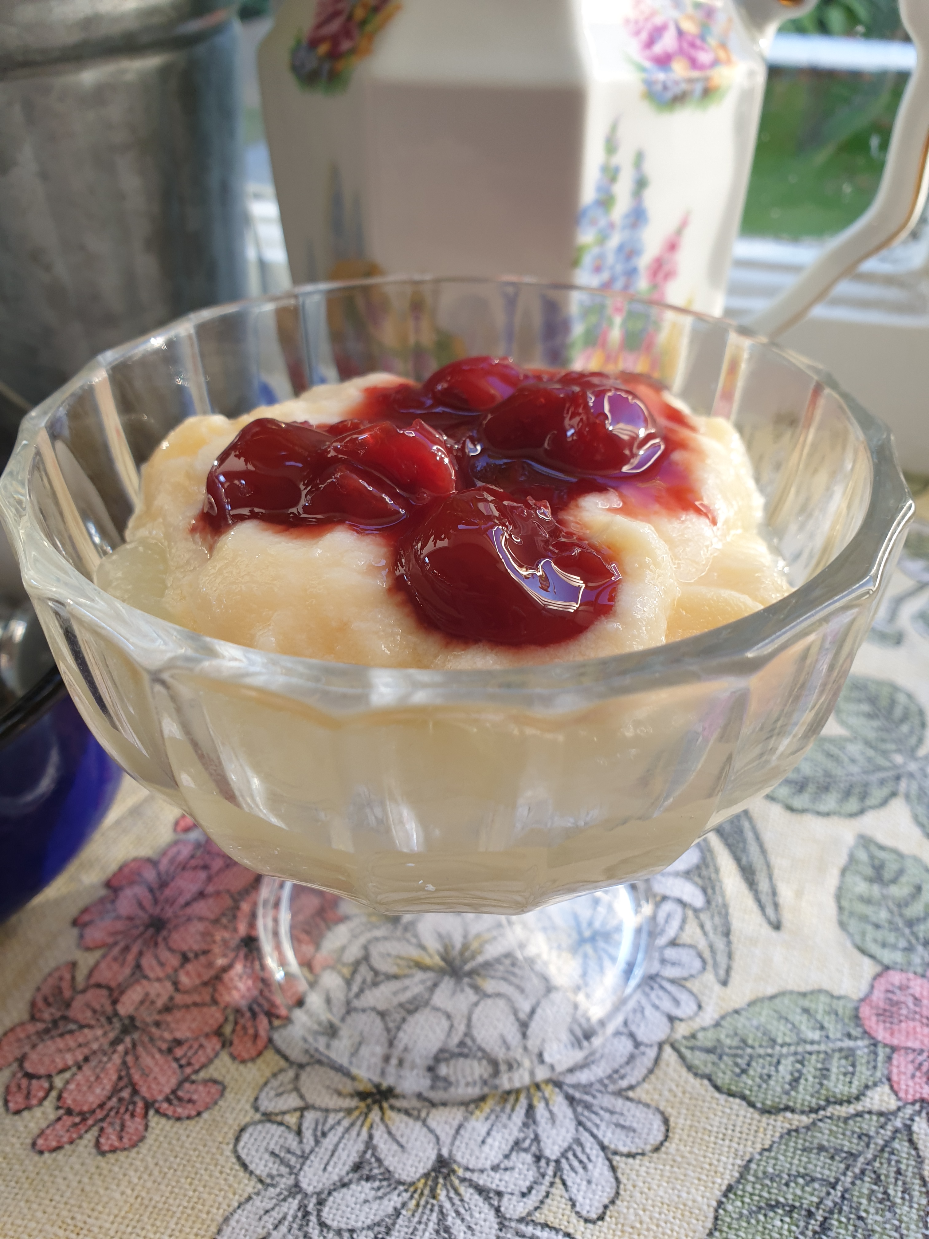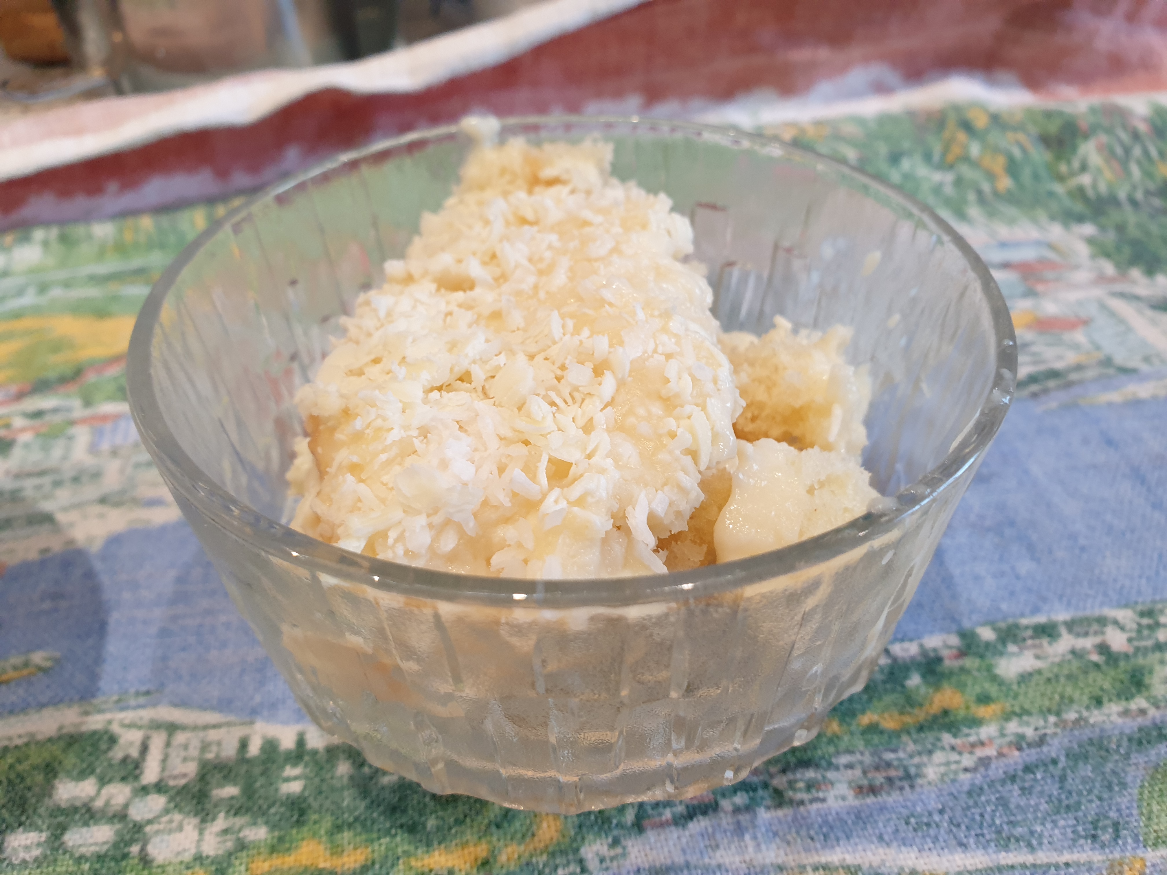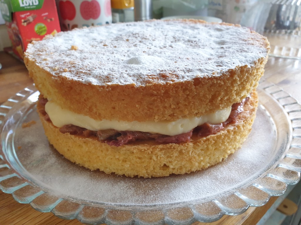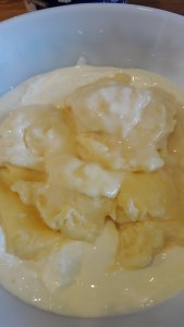 - 3-4 large cooking apples – peeled and cored – half cooked with sugar and a little cinnamon added.