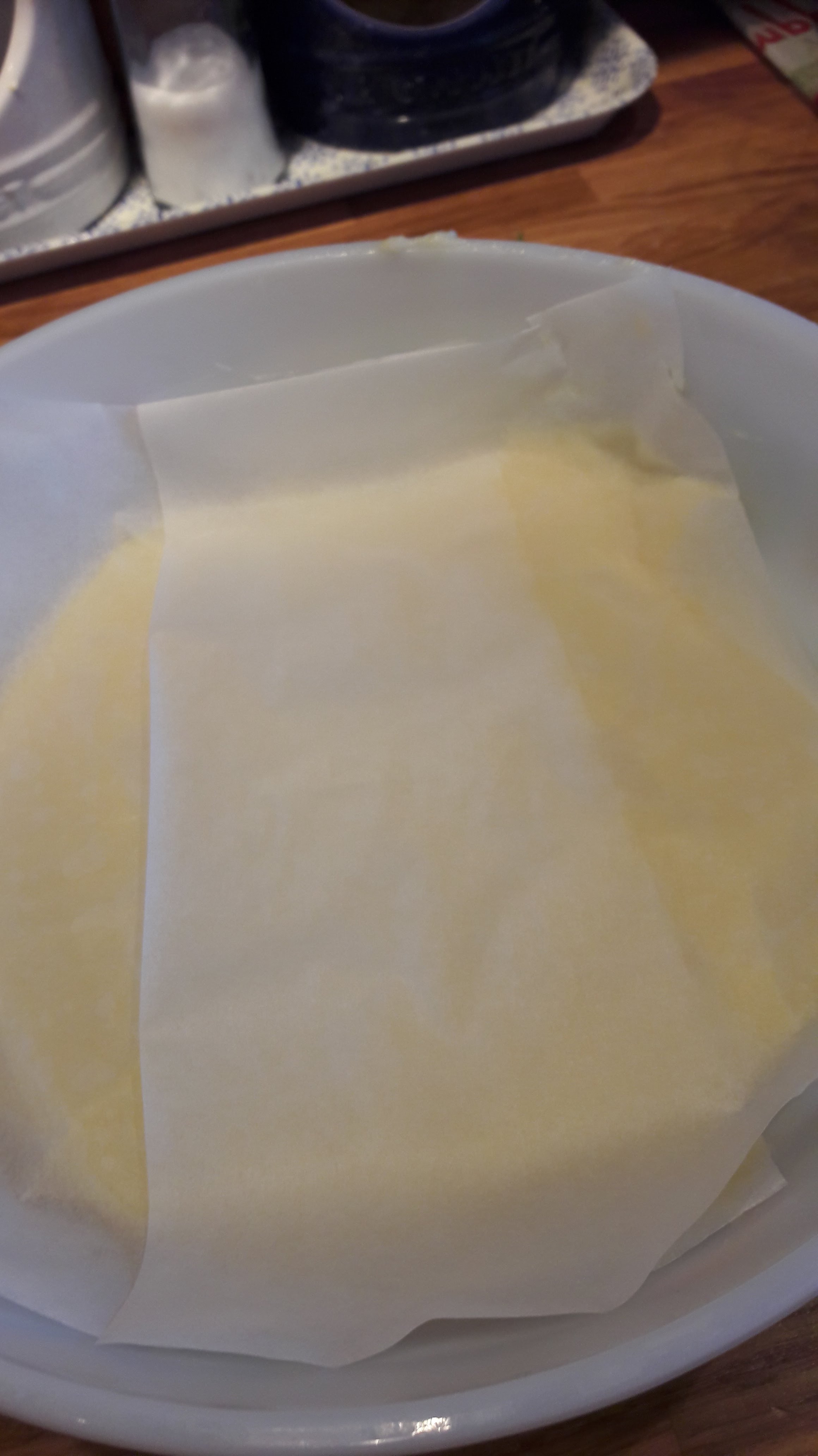 - Grease and line with one sheet of baking paper – 2 sides and the base of the 26 x 21cm tin.