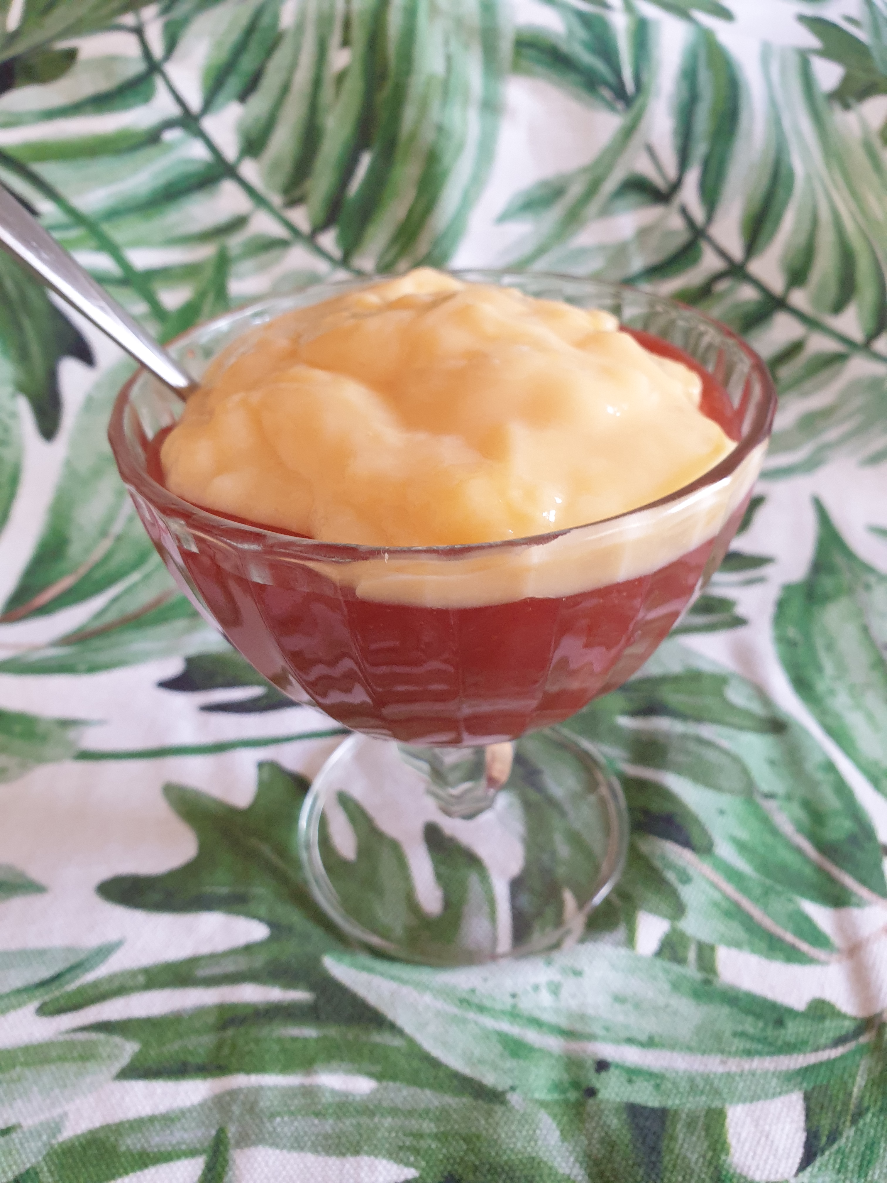 - Cover the apples with the budyń – spreading it out to cover the apples.