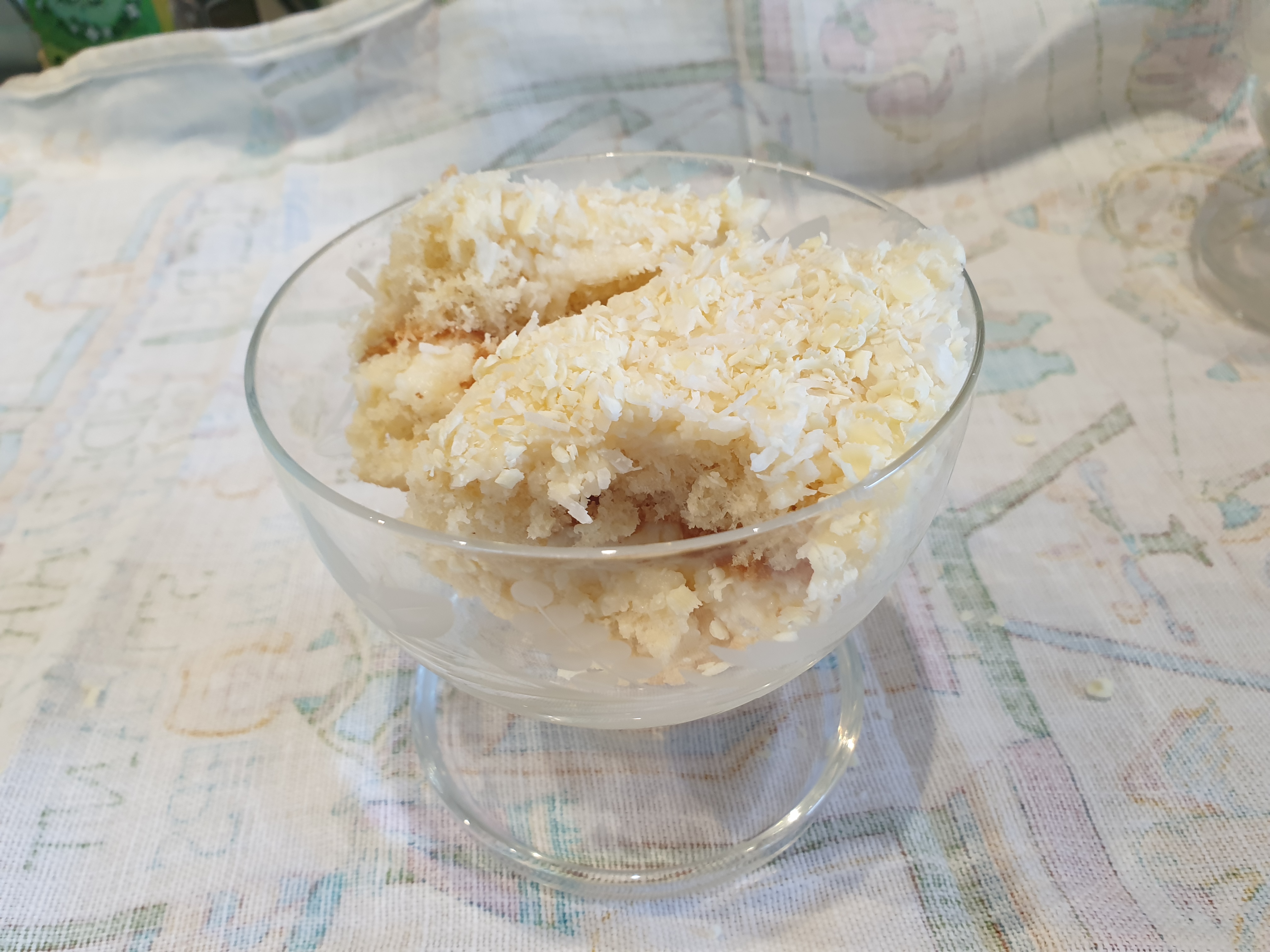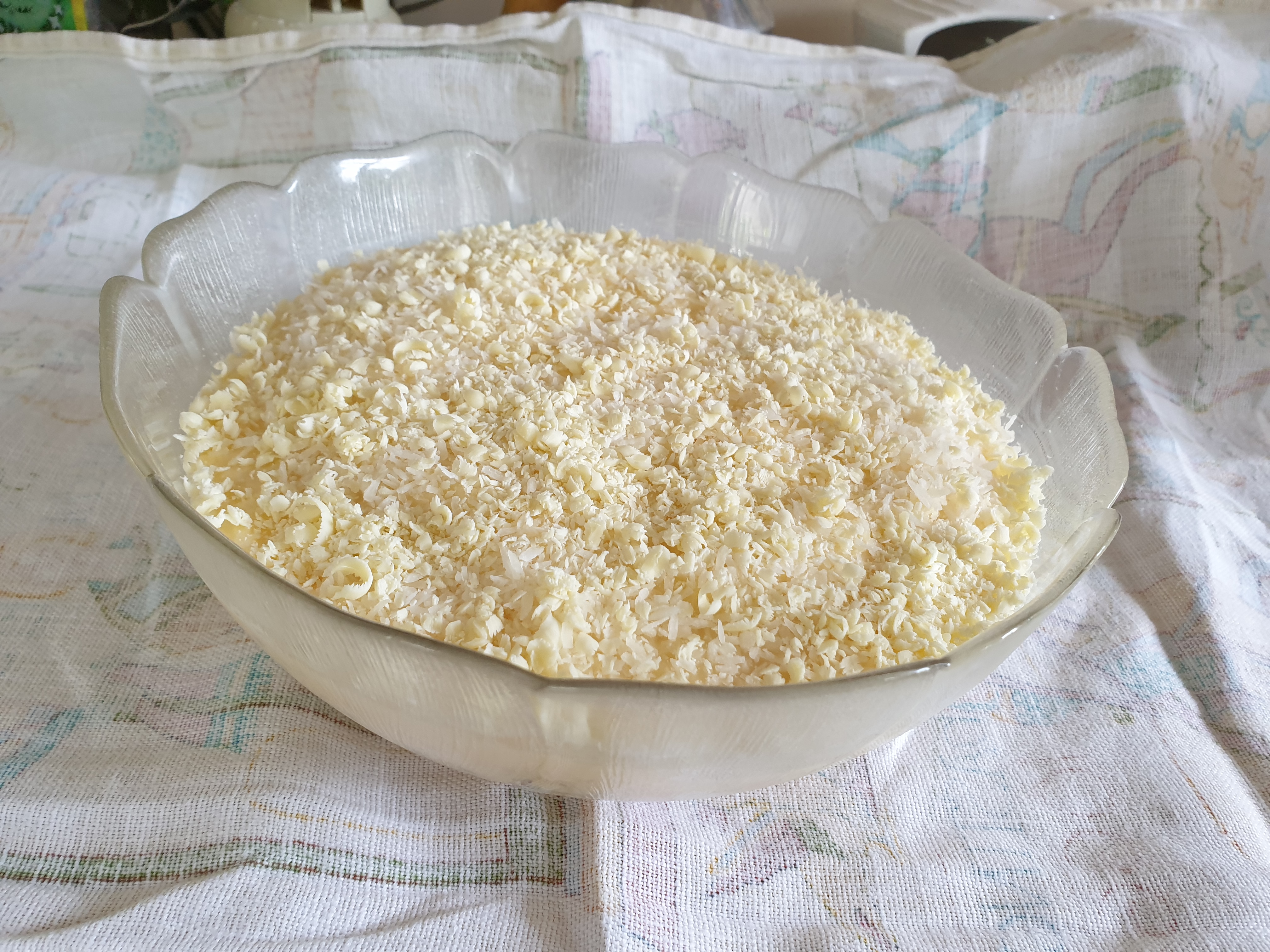 - Sprinkle the crumble mixture over all the budyń.