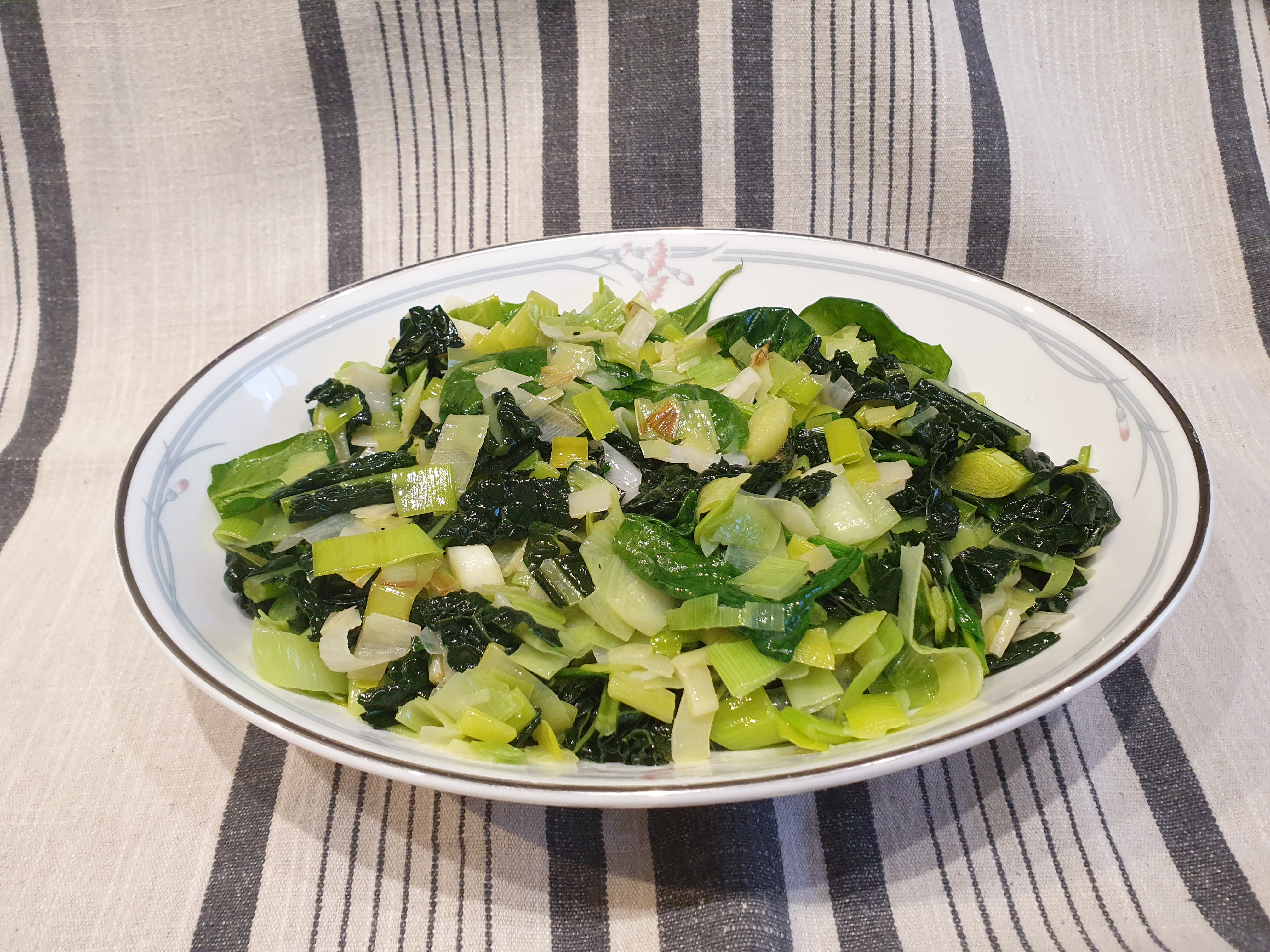 - Put the cut leeks into hot water and simmer for a few minutes.