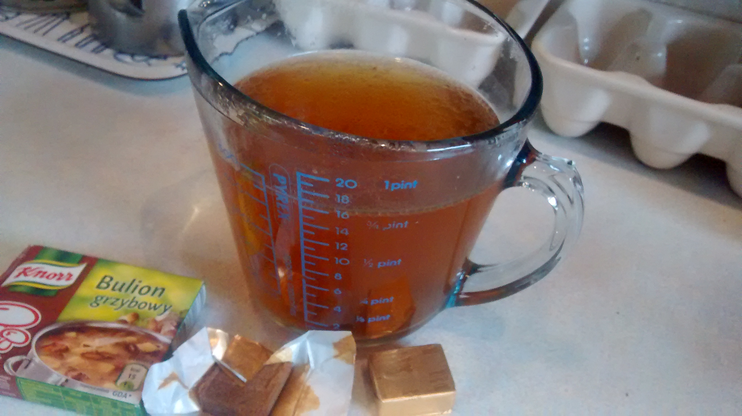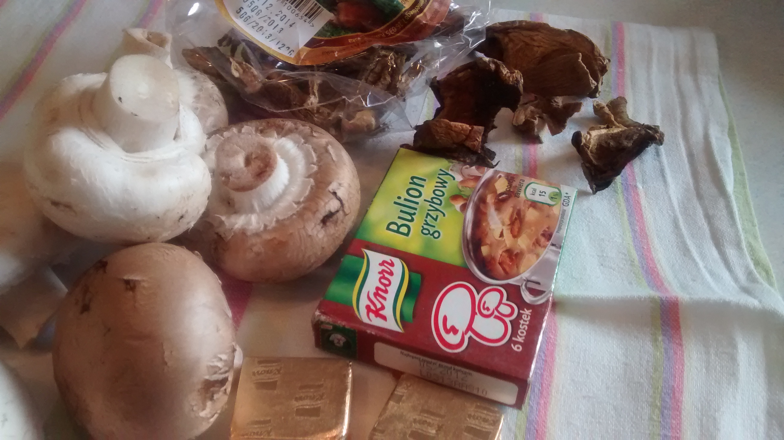 In Poland there are now mushroom stock cubes which are very useful especially for making sauces.  Years ago I brought loads back to England, now you can find these in the many Polish food shops. The ones I use are made by Knorr and are shown on the photographs in this post.  These stock cubes contain a small amount of dried mushroom extract.