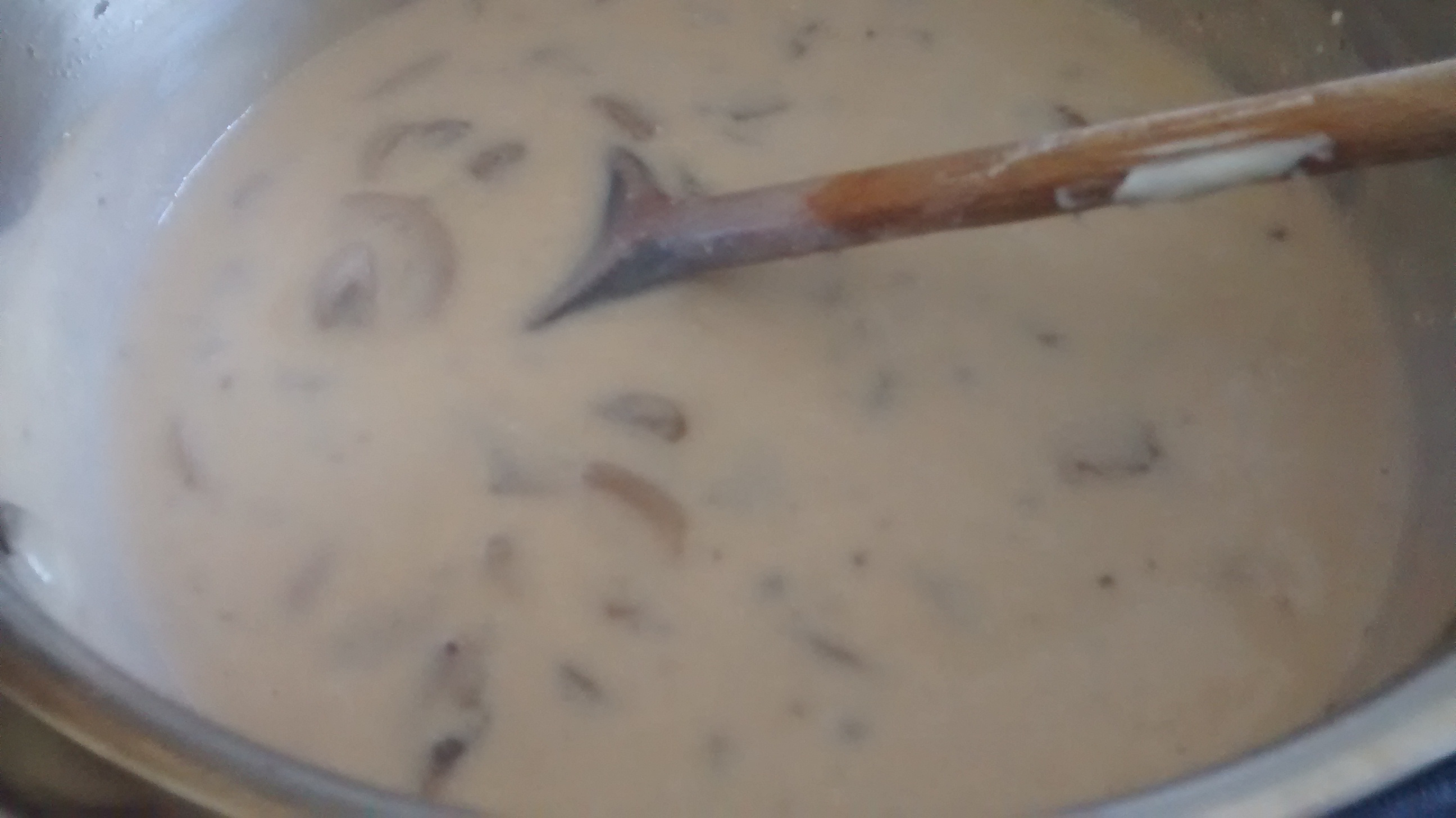 Add the cornflour mixture to the cooked mushrooms and stir gently over the heat until the sauce thickens.