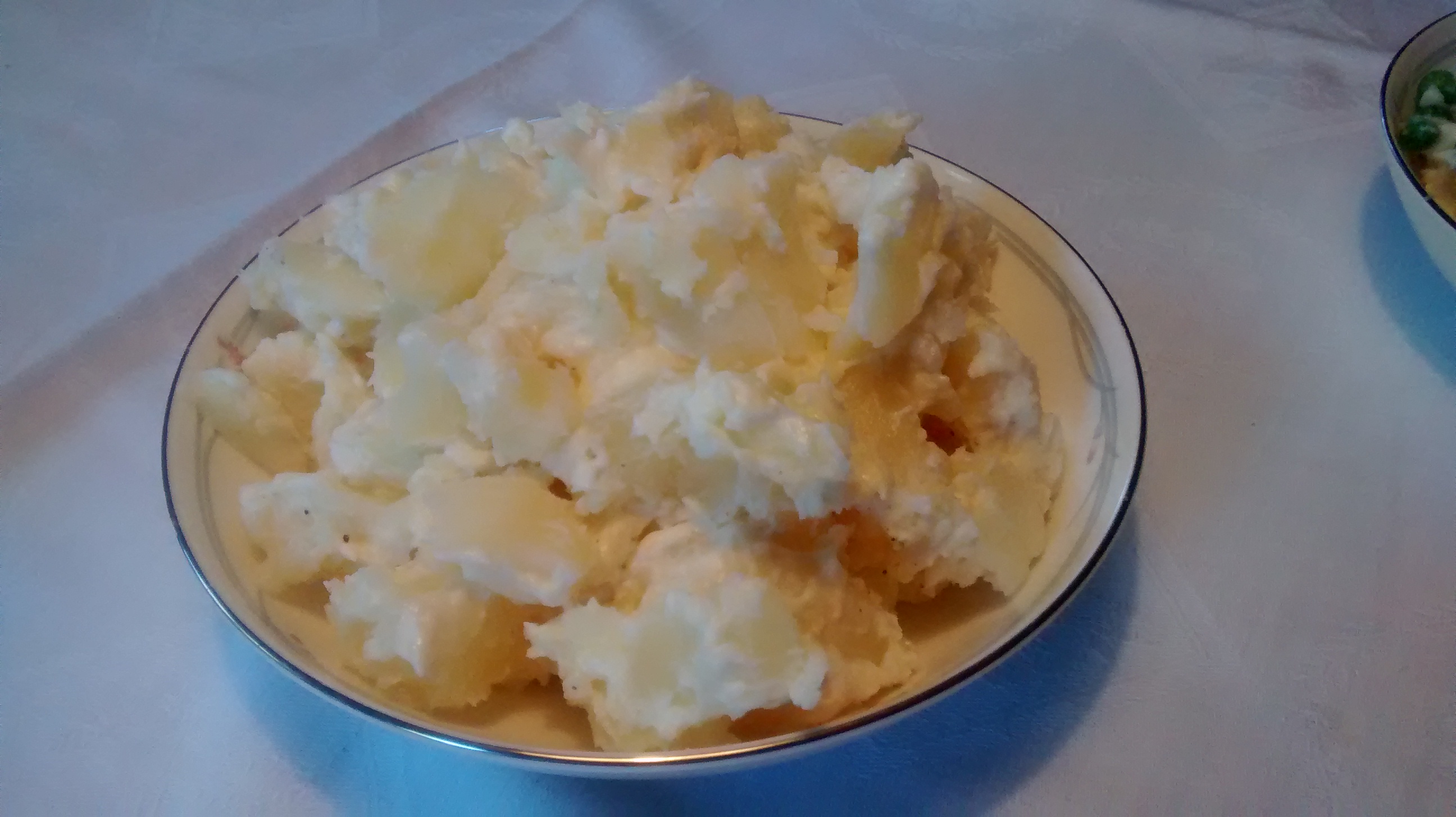 I like to use potatoes that are still slightly warm as I find the mayonnaise coats them better.