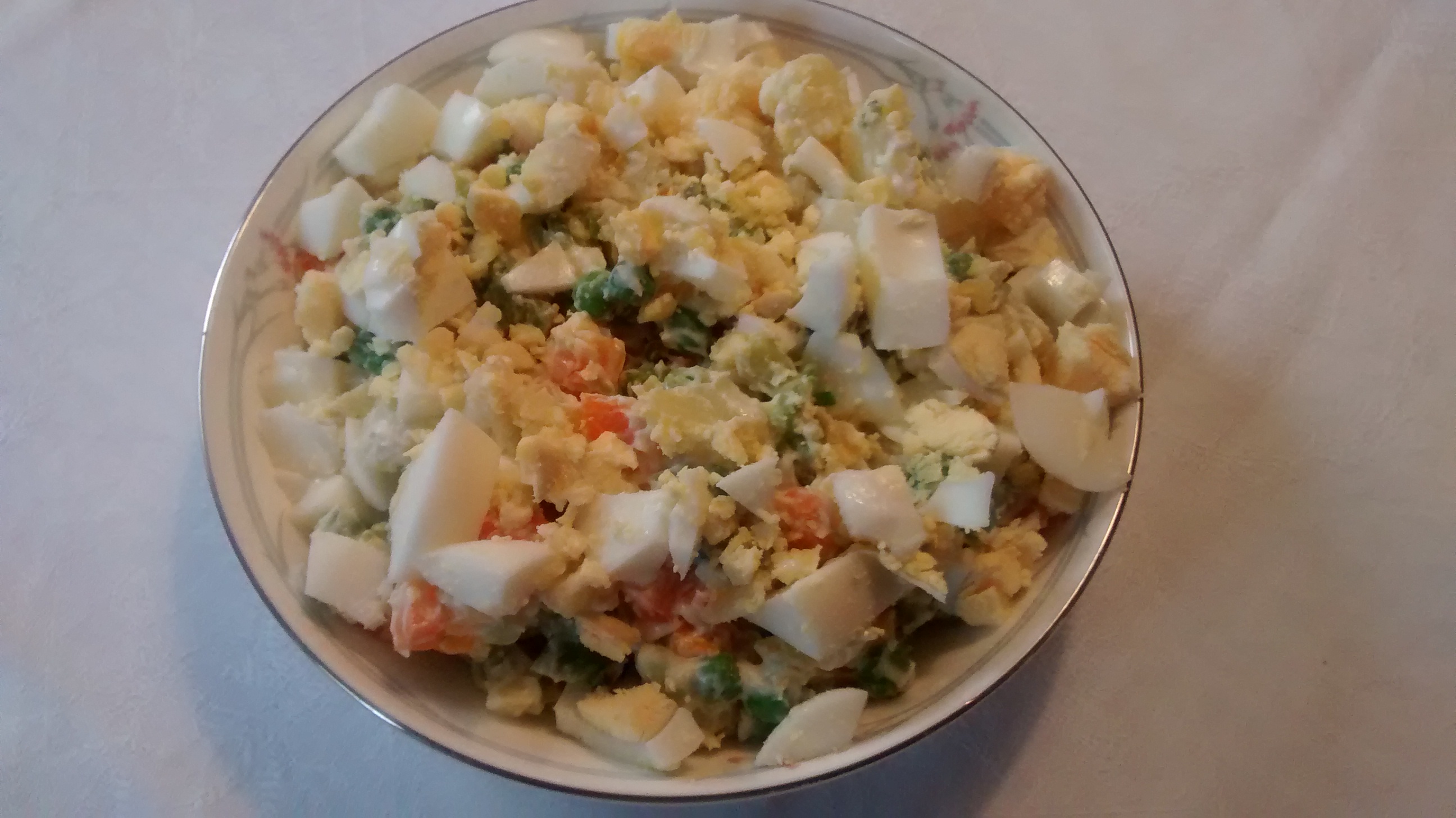 Add 2 hard boiled eggs which have been chopped to the salad.
