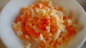 Once the vegetables have cooled then chop them into small pieces.