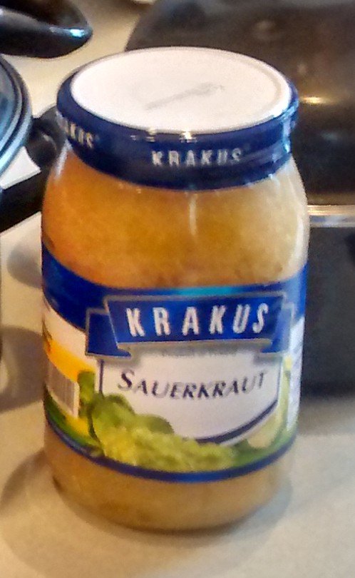 Take the sauerkraut out of the jar and put into a saucepan with any liquid from the jar.