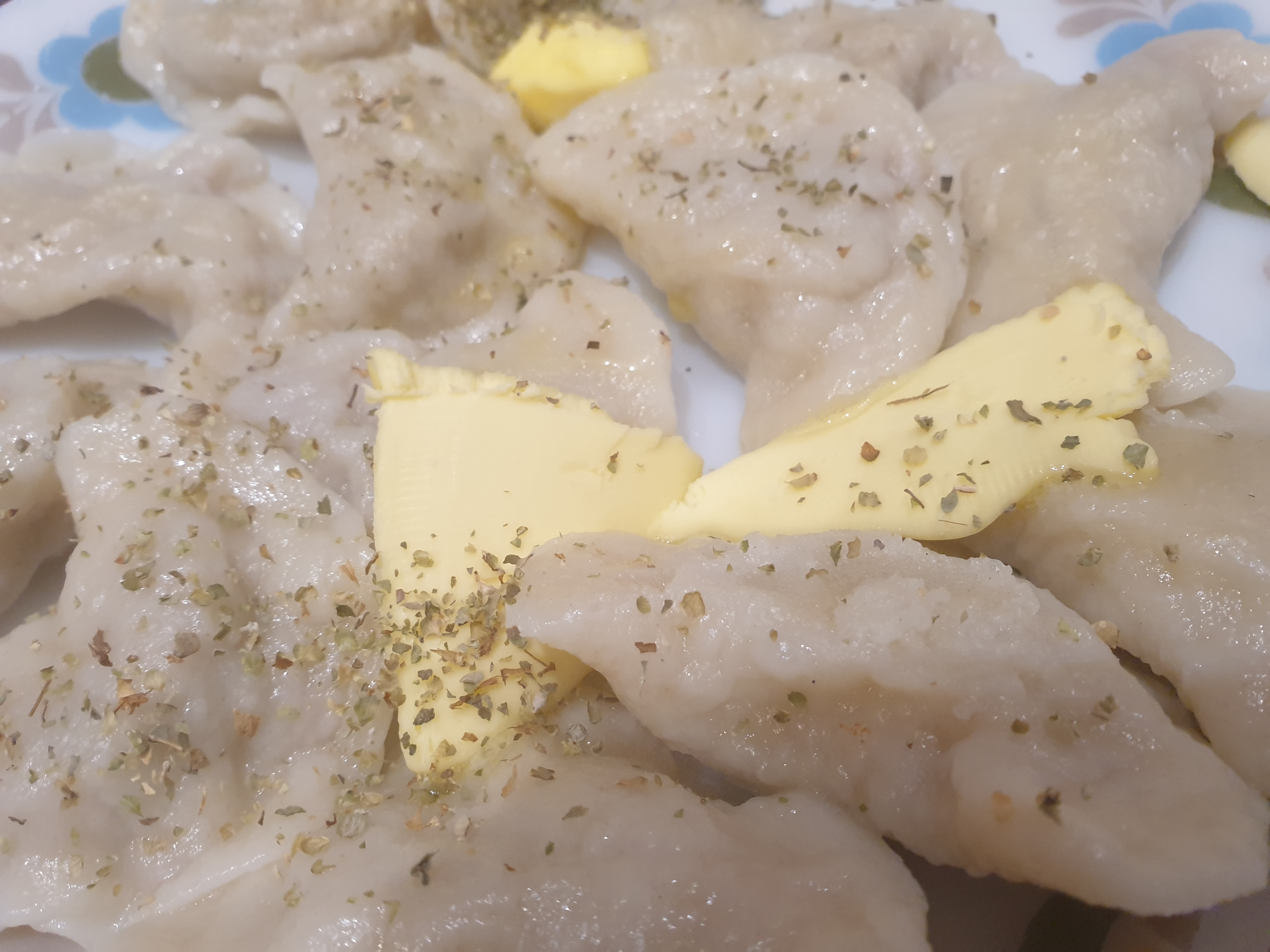• The kołduny are served with marjoram (fresh or dried) and butter or soured cream or