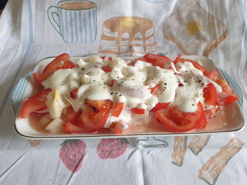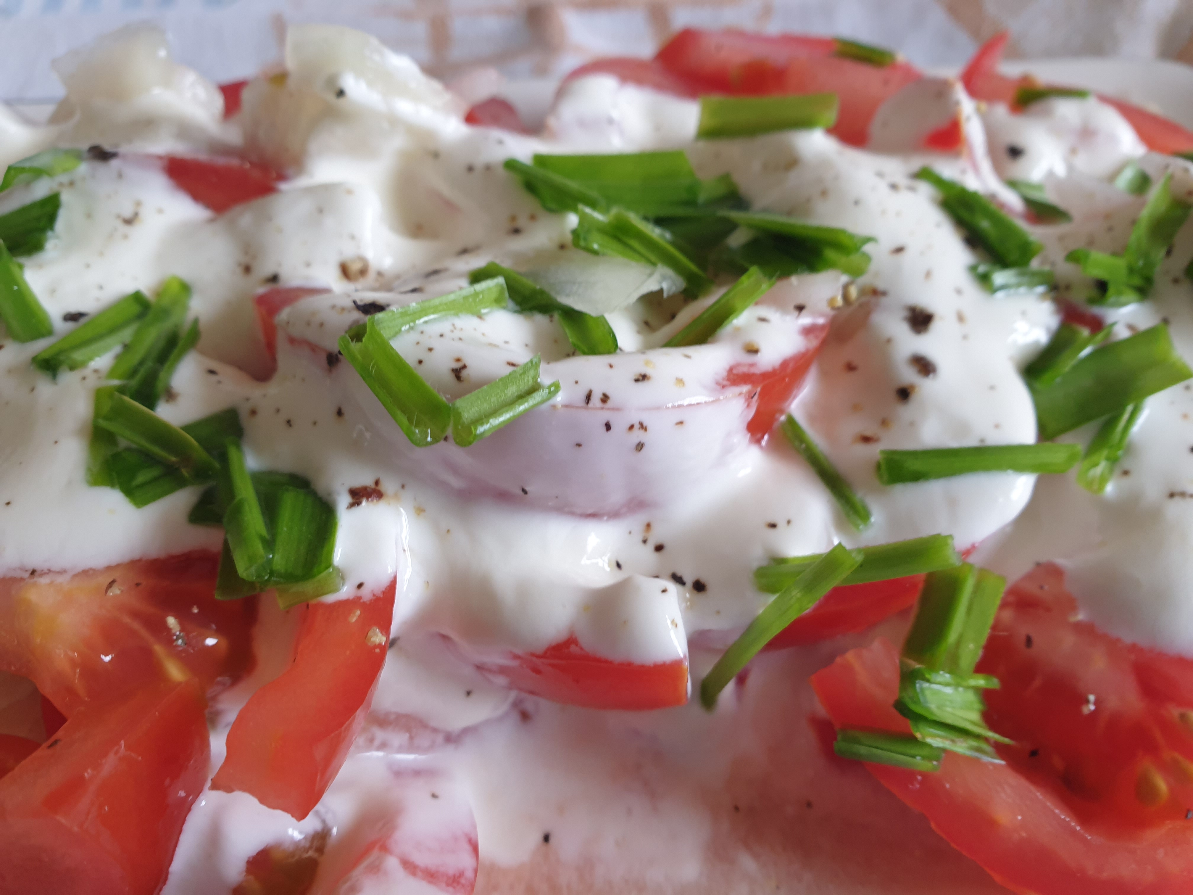 • Like my tomato salad but with soured cream dressing.
